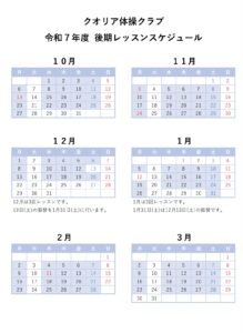後期一般コースレッスンスケジュール🤸♂️✨by katokazukion 投稿日: 2025年10月1日2025年10月1日 令和7年度 後期一般コースレッスンスケジュールになります。 よろしくお願いいたします。